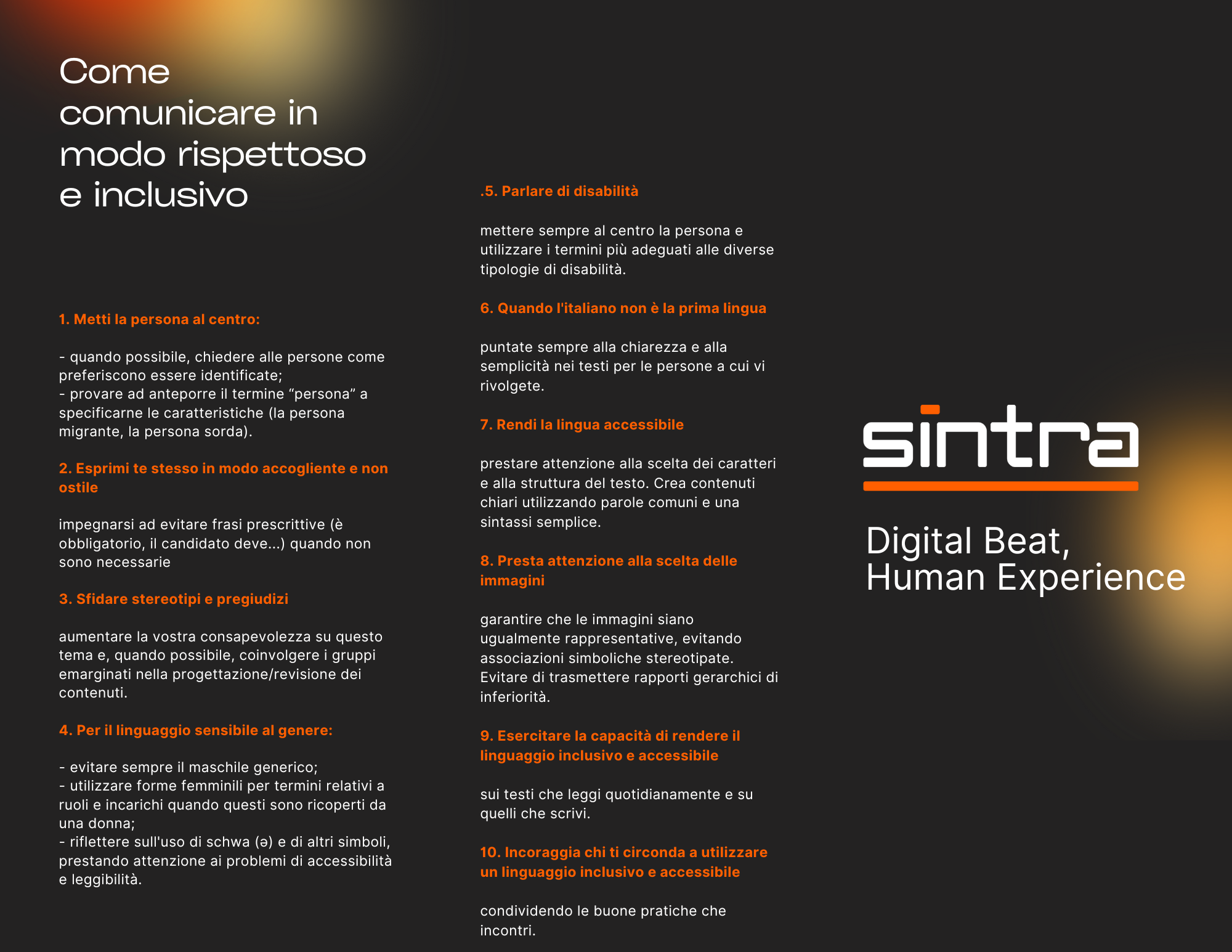 Sintra ha deciso di intervenire pertanto nelle aree chiave che impattano sulle tematiche legate alla parità di genere e alla diversità e inclusione: