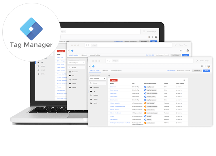Tale tracciamento è stato possibile grazie all’implementazione di data layer, oggetti (di codice) utilizzati per passare eventi e variabili in Google Tag Manager.