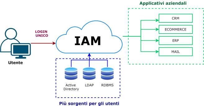 In pratica un sistema IAM ci aiuta a centralizzare tutte queste problematiche in un unico sistema, permettendoci di risolvere una volta per tutte. La buona notizia è che esistono sul mercato soluzioni già pronte che rispettano i più elevati standard di sicurezza, quindi non abbiamo scuse per non utilizzarli! Vediamo nei prossimi paragrafi come far convivere uno IAM con i sistemi aziendali esistenti e quali soluzioni tecnologiche mettere in campo.